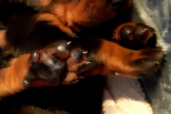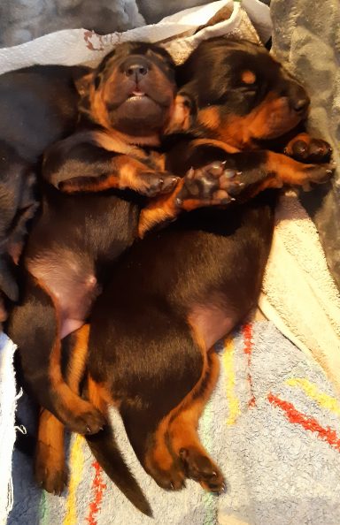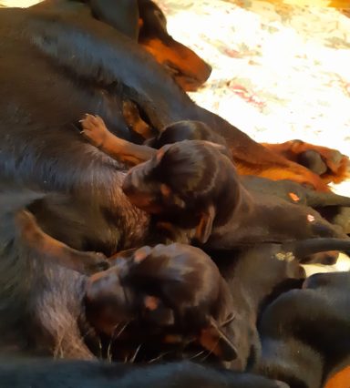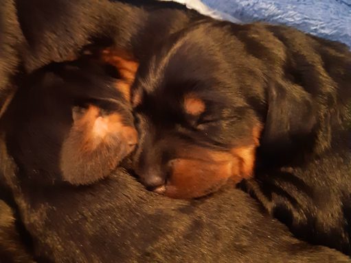 Am Sonntag um kurz nach 10 Uhr hat Arves erster Welpe, eine Hündin, das Licht der Welt erblickt! Innerhalb von drei Stunden sind ihr noch fünf Geschwister, ein Rüde und vier Mädels, gefolgt. Es war eine leichte und entspannte Geburt, alle Welpen haben sofort die Zitzen gefunden und Arve kümmert sich wunderbar. Die Kleinen hatten am Tag 6 alle bereits das Geburtsgewicht verdoppelt und wachsen fleißig weiter