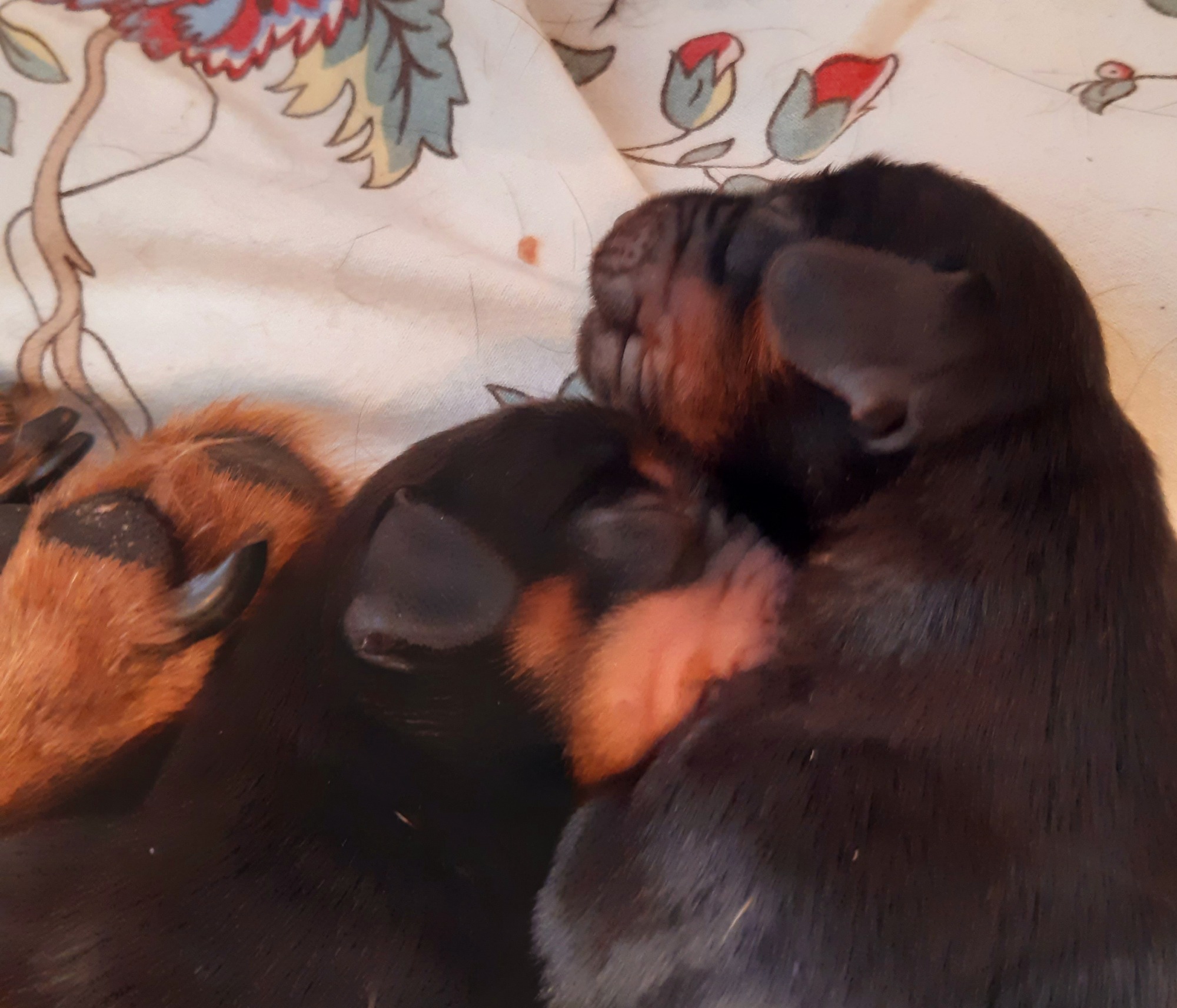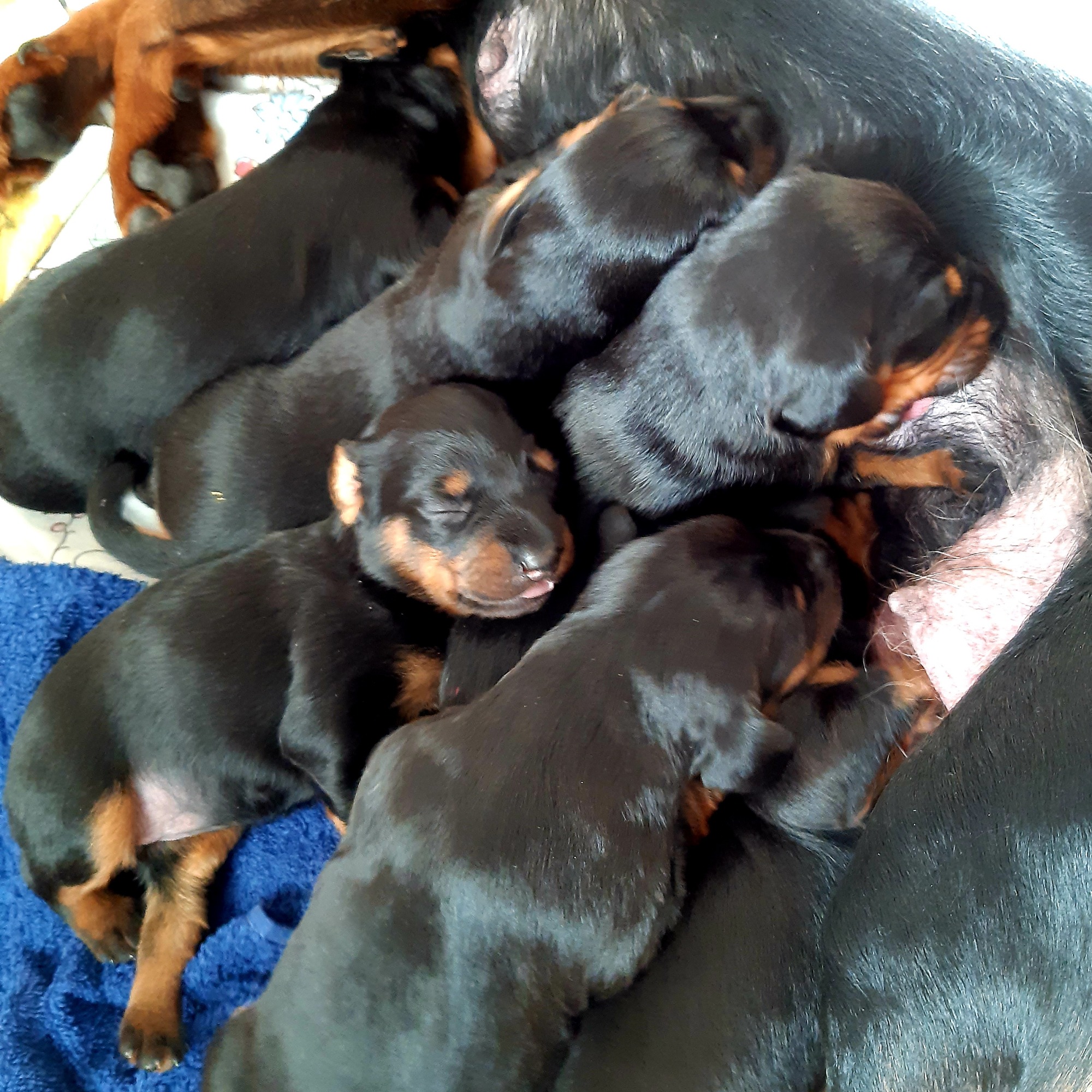 Am Sonntag um kurz nach 10 Uhr hat Arves erster Welpe, eine Hündin, das Licht der Welt erblickt! Innerhalb von drei Stunden sind ihr noch fünf Geschwister, ein Rüde und vier Mädels, gefolgt. Es war eine leichte und entspannte Geburt, alle Welpen haben sofort die Zitzen gefunden und Arve kümmert sich wunderbar. Die Kleinen hatten am Tag 6 alle bereits das Geburtsgewicht verdoppelt und wachsen fleißig weiter